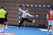 Und so starteten sie, so kann man optimistisch sagen, in die wohl beste Halbzeit der bisherigen Saison. Ein starker Marian Voigt hinter einer kompakten Abwehr und vorne eine konzentrierte Angriffsleistung, angeführt von einem starken Hannes Rabe, brachten dem HCB früh eine komfortable Führung. Beim Stand von 8:14 nahm Heimtrainer Gonzalo Tajuelo seine erste Auszeit. Noch einige Minuten sollte die Burgenländer Führung bei sechs Toren bleiben, ehe die Gastgeber dank einer doppelten Überzahl bis zur Pause noch auf vier Treffer herankamen.